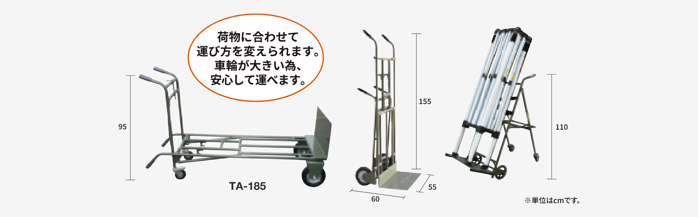 | 材 質 | : | フレーム=スチール 車輪=ノーパンクタイヤ |